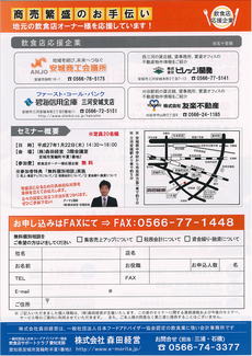 このセミナーは、飲食店様に関わる地元企業様、金融機関様からサポートをしていただております。当社としても、地元飲食店様を盛り上げるべく、可能な限りバックアップさせていただきます。