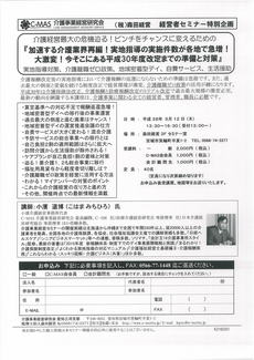 本セミナーでは、介護事業経営のスペシャリストである小濱道博氏を講師に迎え、最新の情報を提供すると共に、ピンチをチャンスに変えるためのヒントが満載です。