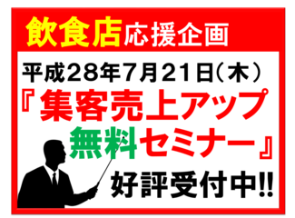 このセミナーは、飲食店様に関わる地元企業様、金融機関様からサポートをしていただております。当社としても、地元飲食店様を盛り上げるべく、可能な限りバックアップさせていただきます。