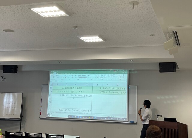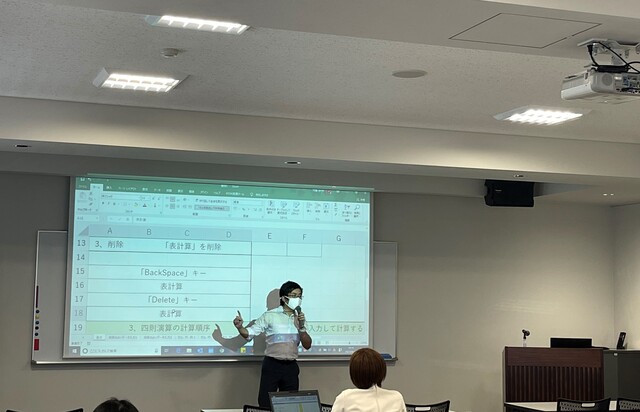 始めに弊社取締役の磯貝からエクセルを活用するメリットなどをお伝えし、次にデジタル室の竹内が講師として、実際にパソコンを使って一つ一つエクセルの操作方法を説明させていただきました。